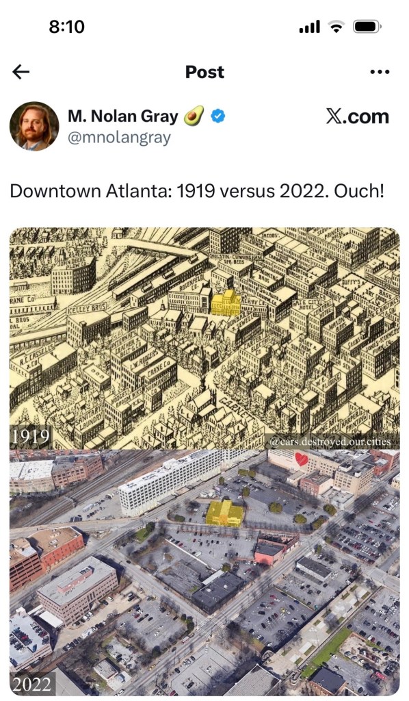 The screenshot below, from a Bloomberg newsletter, tells a story that has been told before. An area in a downtown, or alongside a river, or in a first-tier suburb, becomes blighted beyond repair. As a result, a new development is scheduled to replace it.