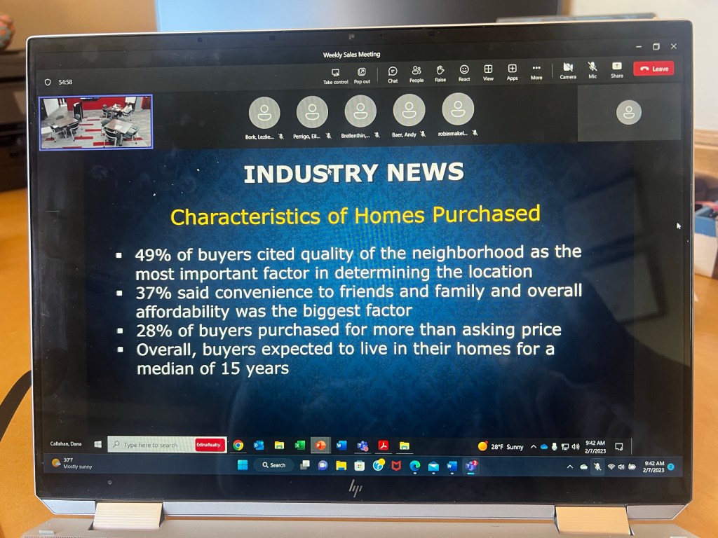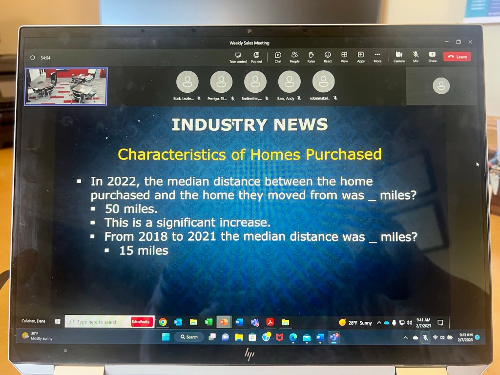 The Covid effect shows up in this next slide. Due to the opportunity for remote work, buyers had the opportunity to move further away from their present location. The distance people moved from their old house to their new house jumped from 15 miles in prior years, to 50 miles in 2022. The cabin is no longer a getaway- it’s the main residence.