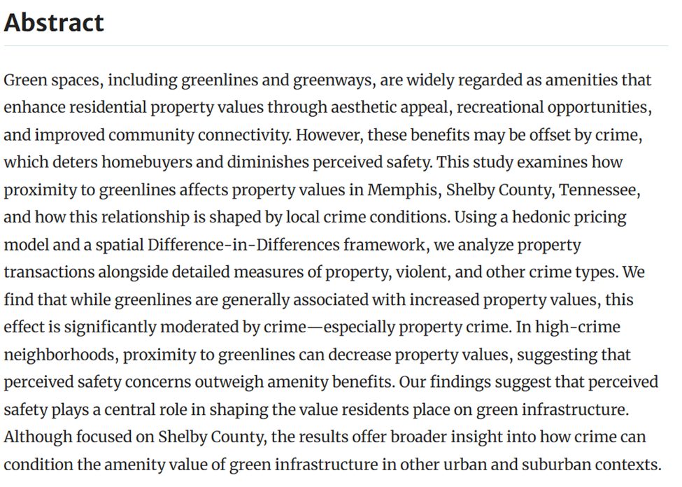 Property Values Near Urban Greenlines by Jason De Freitas, Fatemeh Kamkar, Mark Sunderman,Velma Zahirovic‑Herbert.