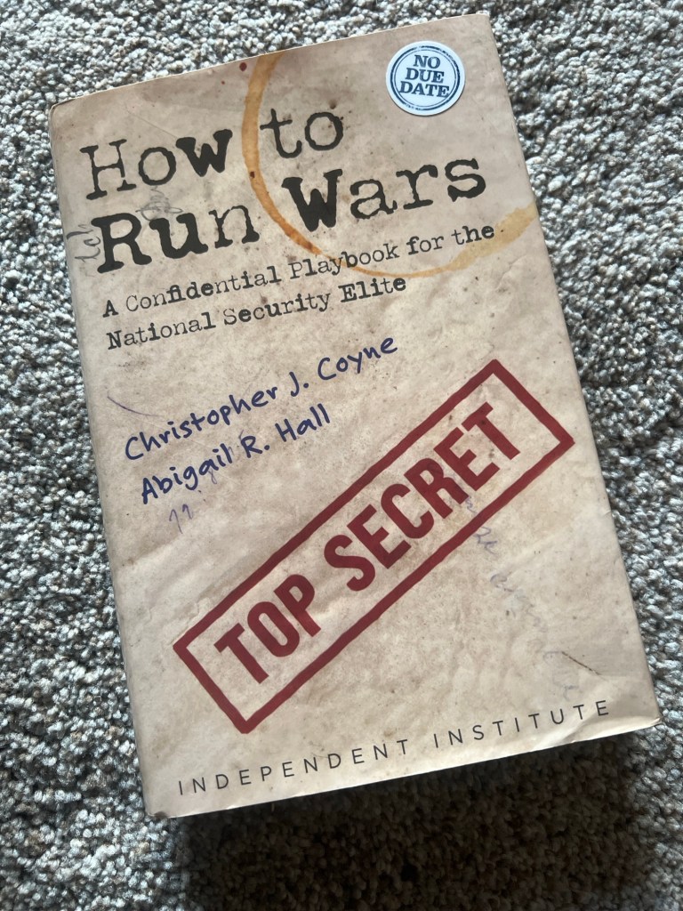 Just finished How to Run Wars: A Confidential Playbook for the National Security Elite by Chris Coyne and Abigail Hall (Independent Institute, 2024).