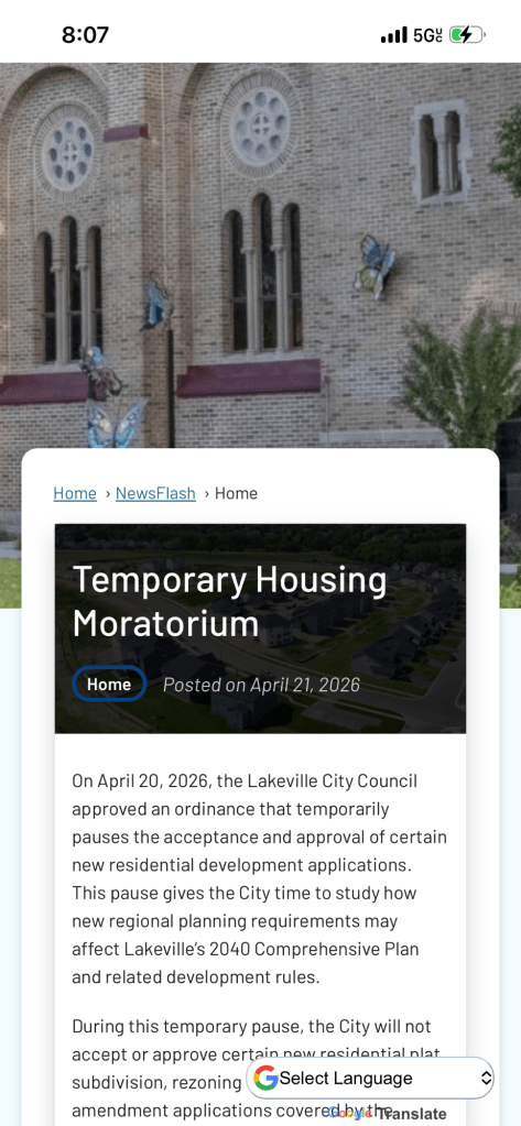 And so it goes Victoria Wilson Externalize/Internalize, Governance April 21, 2026 Rochester builds Lakeville pauses Share this: Share on X (Opens in new window) X Share on Facebook (Opens in new window) Facebook Like Loading... Related Published by Victoria Wilson Independent theorist interested in questions at the intersection of real estate, value and price. View all posts by Victoria Wilson Published April 21, 2026