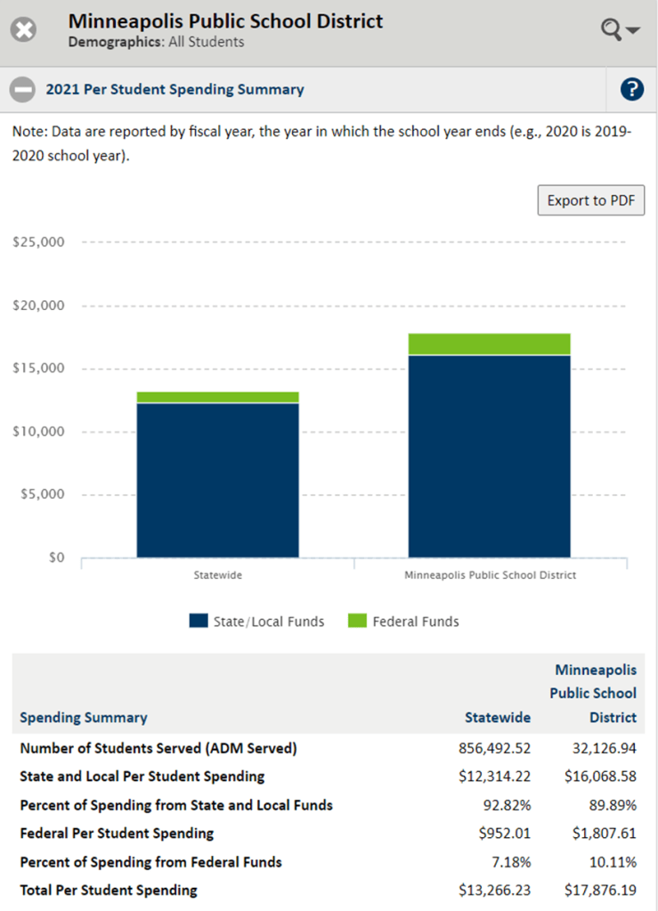 I don’t think I’m going out on a limb to say the majority of Minnesotans want these kids to do well. There is pride in not only school performance but public school performance. Most people support public schools. So there should be no problem dumping a whole bunch of cash into the schools, right? Well, no. The Minneapolis school district, educator principal for this group of children already receives $4,610 (35%) more per child than the average MN student. Putting more money into institutions that are failing to perform seems a fool’s errand.