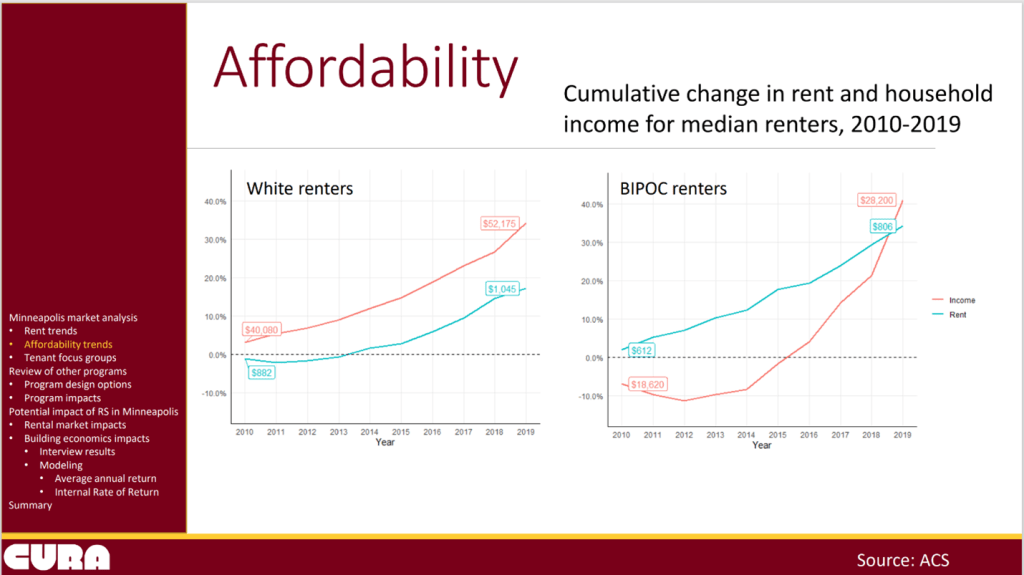 Allison Shertzer takes issue with the headline’s cryptic economic message. If there is enough housing, then the price for occupancy should settle to the price each resident can afford. If there are fifty homes in a settlement and fifty households, then those who can pay the most pick first, and down the line, the pricing match shuffles until the last match of the least desirable to the household to those with the least resources. This simplified balance market omits nuances like how two homes are tied up when people transition from one property to another. Or that when major renovations are underway, it is difficult to live on the property, so it is vacant.