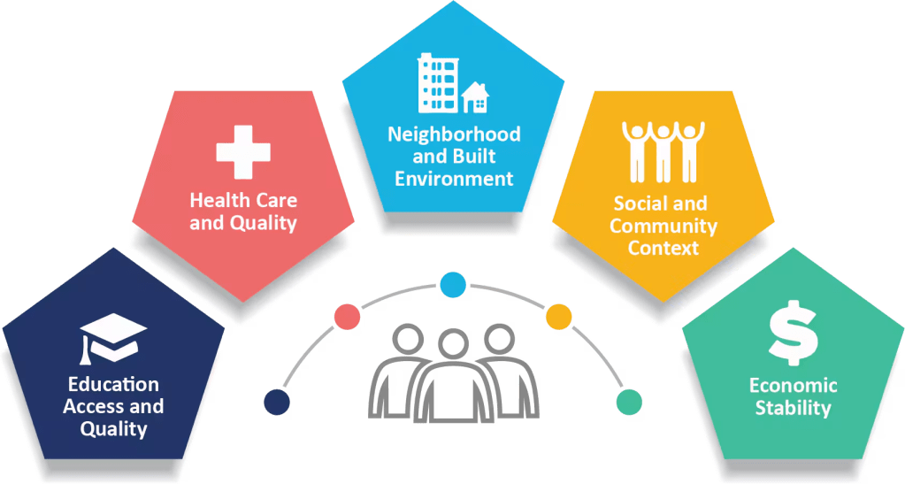 The US Center for Disease Control (CDC) offers a helpful graphic to describe their social determinants.