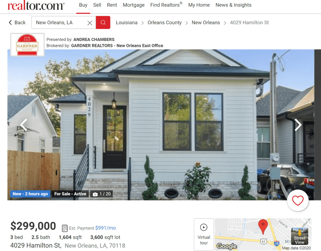 Just for comparison here is a listing for a new construction home in New Orleans posted on Realtor.com today.