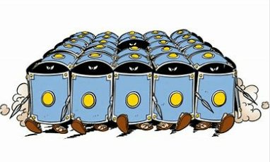 When you think about it, this aptly describes an economic phenomenon. When people take economic action to change their odds of a bad thing happening to them, when they coordinate with others for self-preservation, then they are engaging in a testudo formation. Everyone behind the sheilds benefits from the collaboration. Everyone outside the armored cloaking is either an advisory or left to fend for themselves.