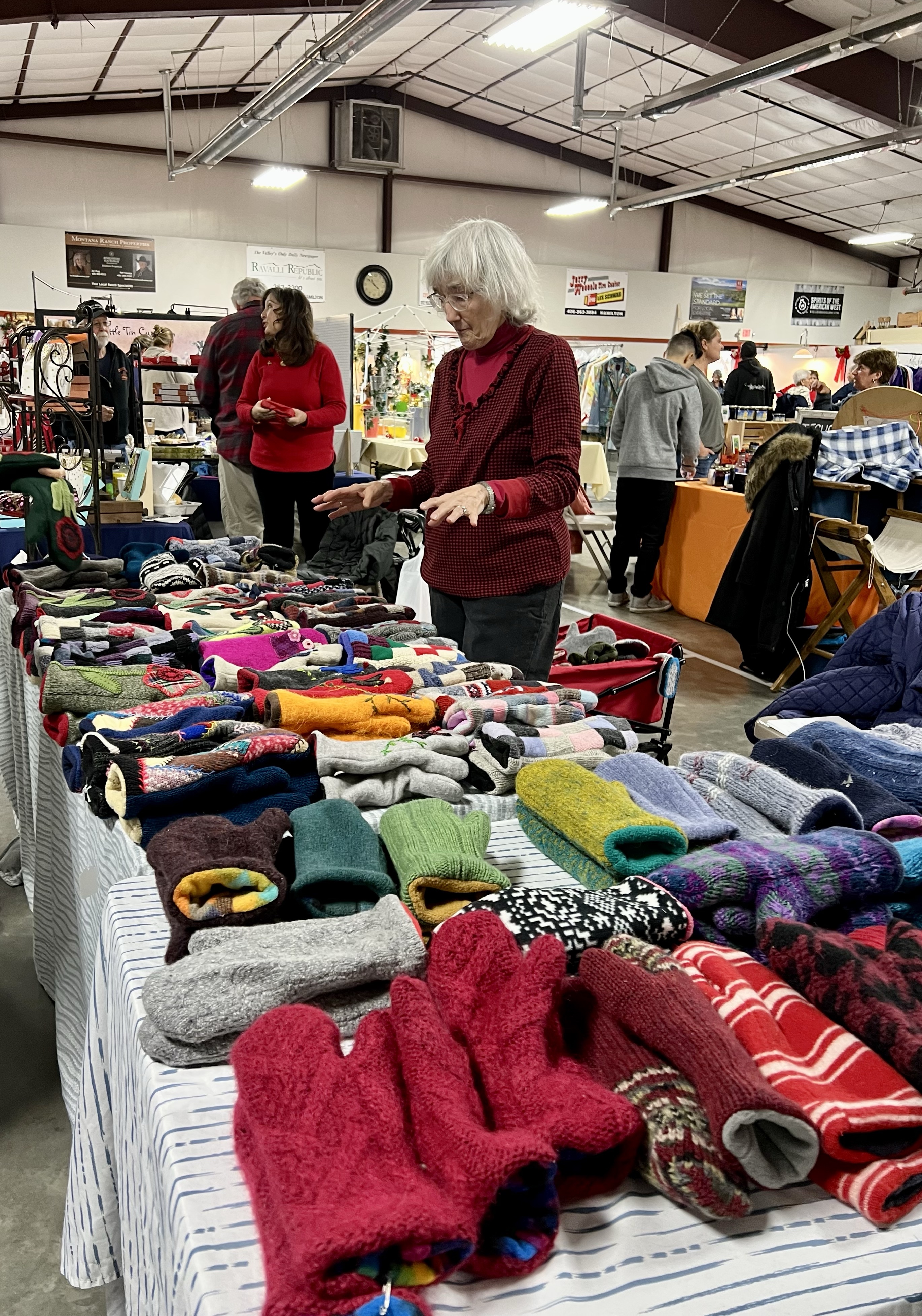 Montana is still remote enough to attract super stars who know the locals won’t be impressed by their presence. No autographs or selfies required. There are still craft fairs where the fine art is in the both besides Brenda selling her fleece lined choppers, made with used sweaters bought at thrift stores. She turned 83 today and we all sang Happy Birthday after the announcement came over the PA. She told me she didn’t have time to sit around. Idleness is not an option.