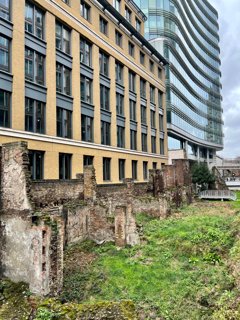 In the City of London, the remains of Roman walls juxtapose modern high rises. The destructive forces of the great fire of 1666 and the Blitz opened up windows into archiology of the ancient past. This was followed, over many generations by an energetic rebuilding.