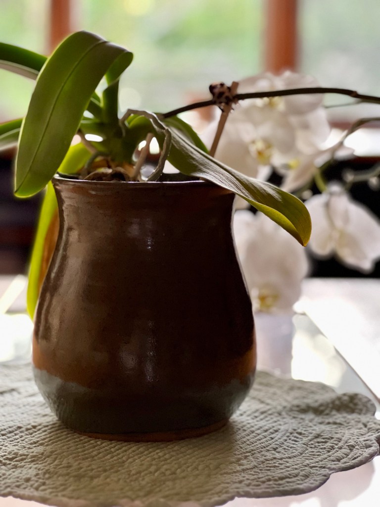 She crafted this pot, sturdy enough to hold my orchid’s heavy blooms.